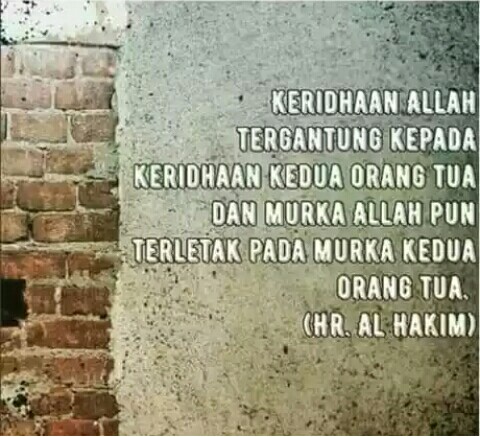 Ibu adalah pintu Surga bagi anak2-nya & Ayah adalah jembatan menuju kepadanya Air susu Ibu yg kita minum adalah saripati makanan hasil jerih payah , keringat Ayah yg mencari nafkah untuk keluarga Karena itu Muliakan Mereka .  Mau keluar rumah ? Jangan lupa cium tangan Ibu & Ayah